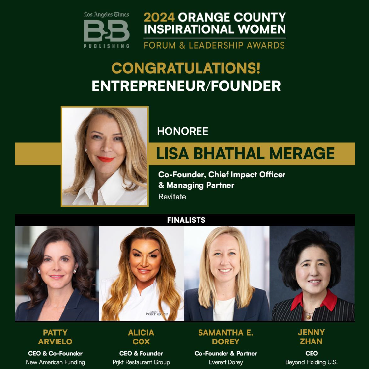 Lisa Bhathal Merage was honored with the Entrepreneur/Founder Award at the LA Times Inspirational Women Forum in Irvine, CA